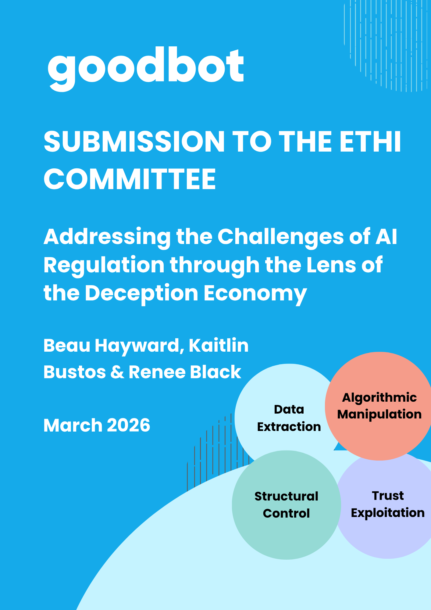 The failure to introduce safeguards that address how and when these practices enable harm exposes citizens to digital ecosystems where attention is prioritized, data extraction is maximized, deception is normalized and safety is optional. These asymmetric practices benefit companies and enable malicious actors, while placing the burden of safety on people, businesses and society. This is what GoodBot calls the Deception Economy.